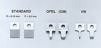 耐磨測試儀圖 所示為一些測試時所用的鏨子(標(biāo)準(zhǔn)型,通用汽車選用型,大眾汽車選用型)