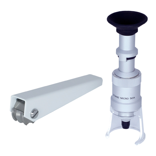 操作簡單, 先選定刀頭, 然后在被測工件上劃線(要劃透至底材), 使用顯微鏡(鏡片上有刻度)和照明光源測量所劃線的楔形接口的一邊(如上圖箭頭所指斜坡的投影距離), 即可算出涂層的厚度。